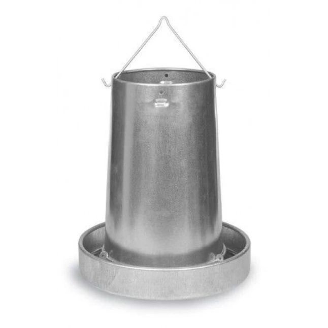Trémie robuste en acier galvanisé. Poignée de transport servant à accrocher et suspendre la trémie.