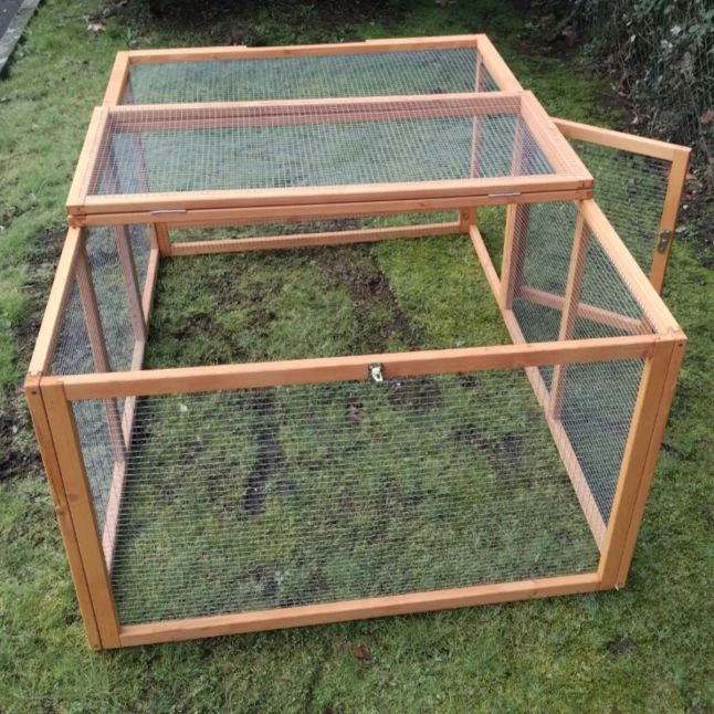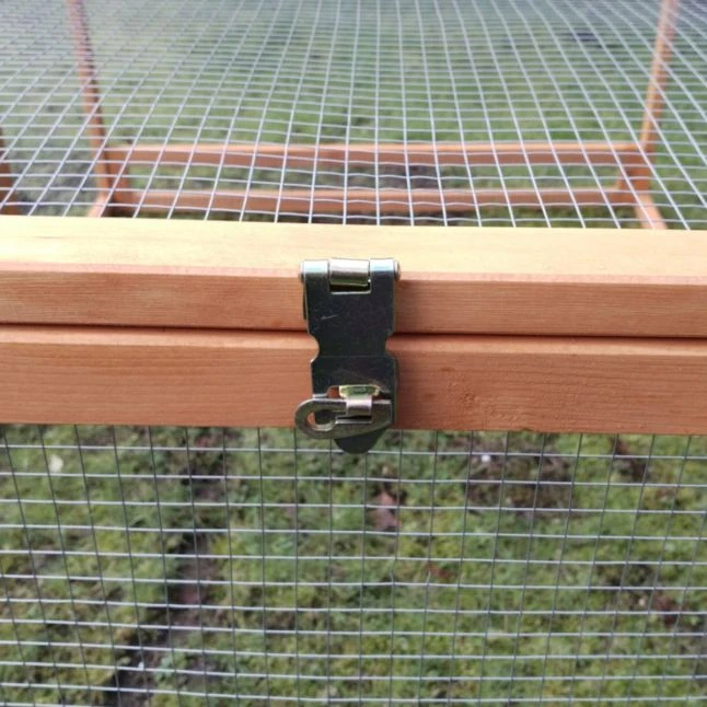 Ce solide parc grillagé est constitué de montants en bois de 25 x 30 mm et ses côtés sont en grillage galvanisé, qui résiste à rouille.