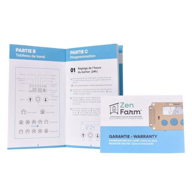 Le moteur contenu dans l’appareil se mettra alors en marche et soulèvera ou bien abaissera la trappe couvrant l’ouverture de la maison de vos volailles.