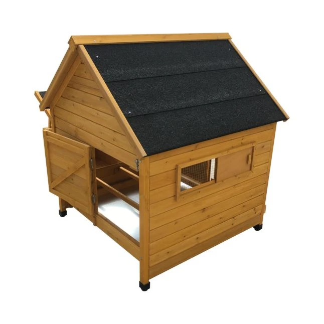 Le côté déco de ce petit abri à poules, avec son pondoir extérieur placé sur le côté pour une récolte des œufs facilitée, ne vous échappera pas ! Il trouvera tout de suite sa place dans votre jardin.
