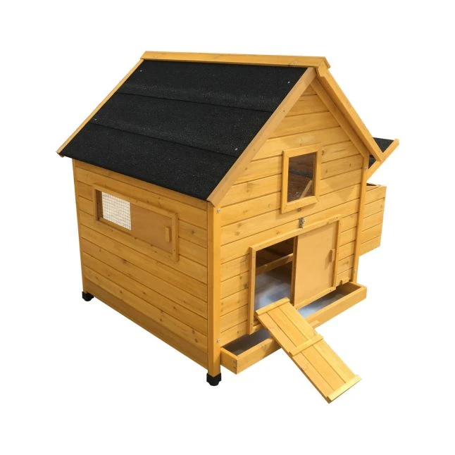 Le bois épais et la toiture à débords recouverte de shingle sont complétés par d’autres astuces permettant d’améliorer l’étanchéité de la nouvelle maison de vos volailles.