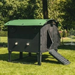 Sa partie nuit est équipée de deux perchoirs et d’un pondoir dans lequel vos pondeuses se relaieront. Sa toiture séparée permet d’accéder aisément aux œufs.