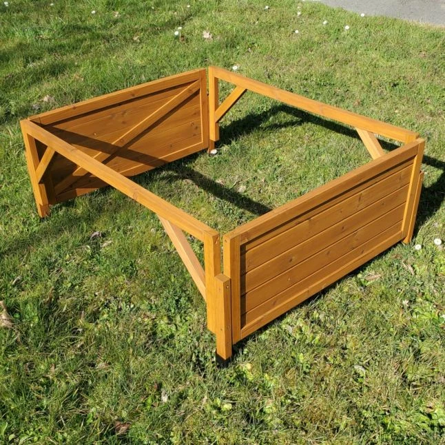 Les pieds équipés de protections plastiques empêchent l’infiltration d’eau, assurant ainsi la préservation du bois face à l’humidité.