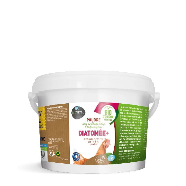 Diatomée+, proposée par la marque française Biovetol, est une poudre idéale pour tous les poulaillers. La terre de Diatomée qu’elle contient absorbera l’humidité et ses huiles essentielles diffuseront une odeur végétale agréable.